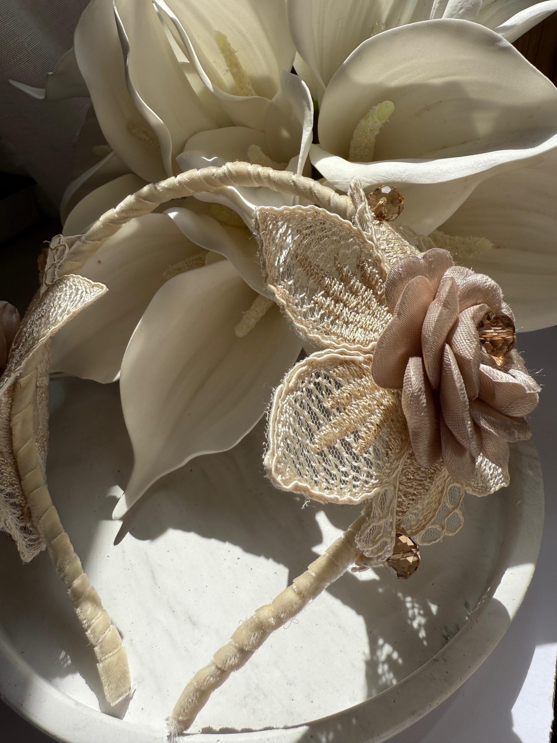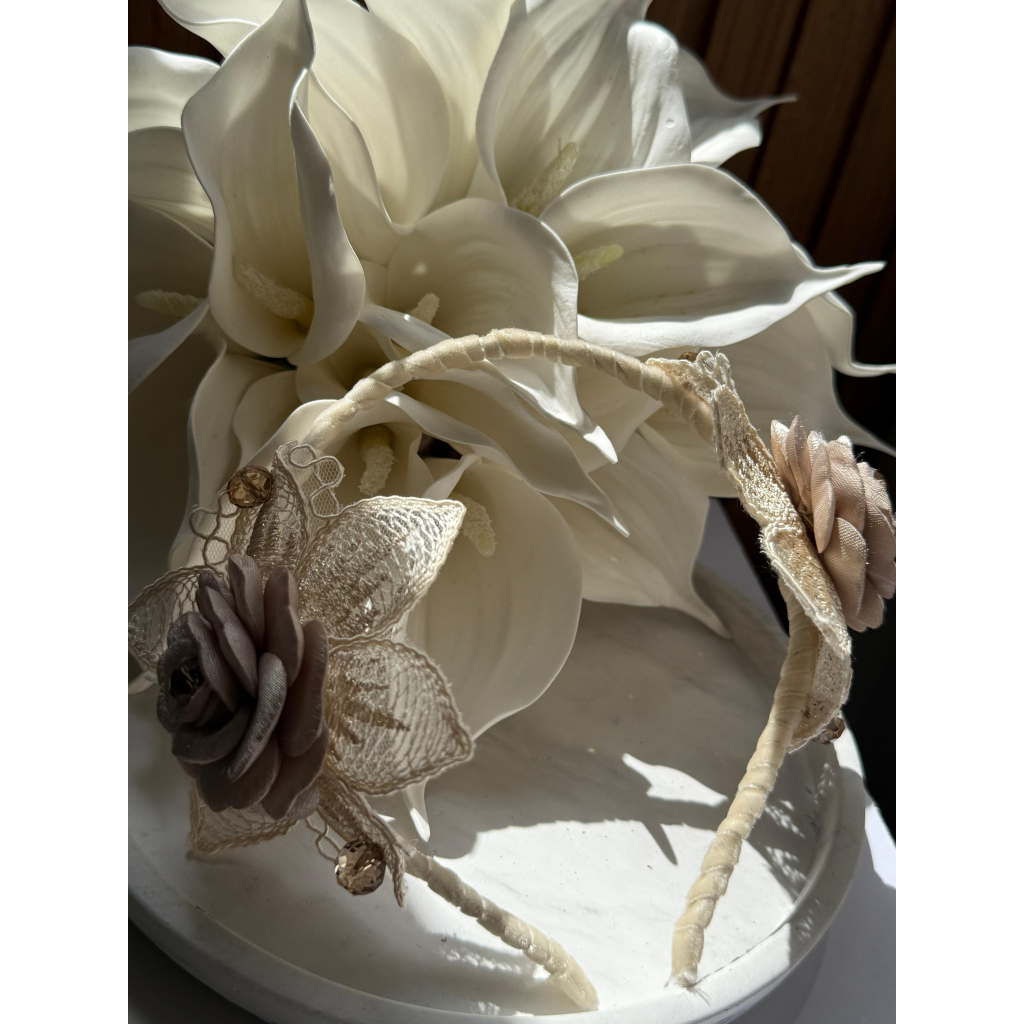 İnce işlenmiş güller ve kelebek kanatlarıyla tasarlanan bu özel saç aksesuarı, romantik anlarınızı taçlandırmak için hazır. Hafif, zarif ve büyüleyici.